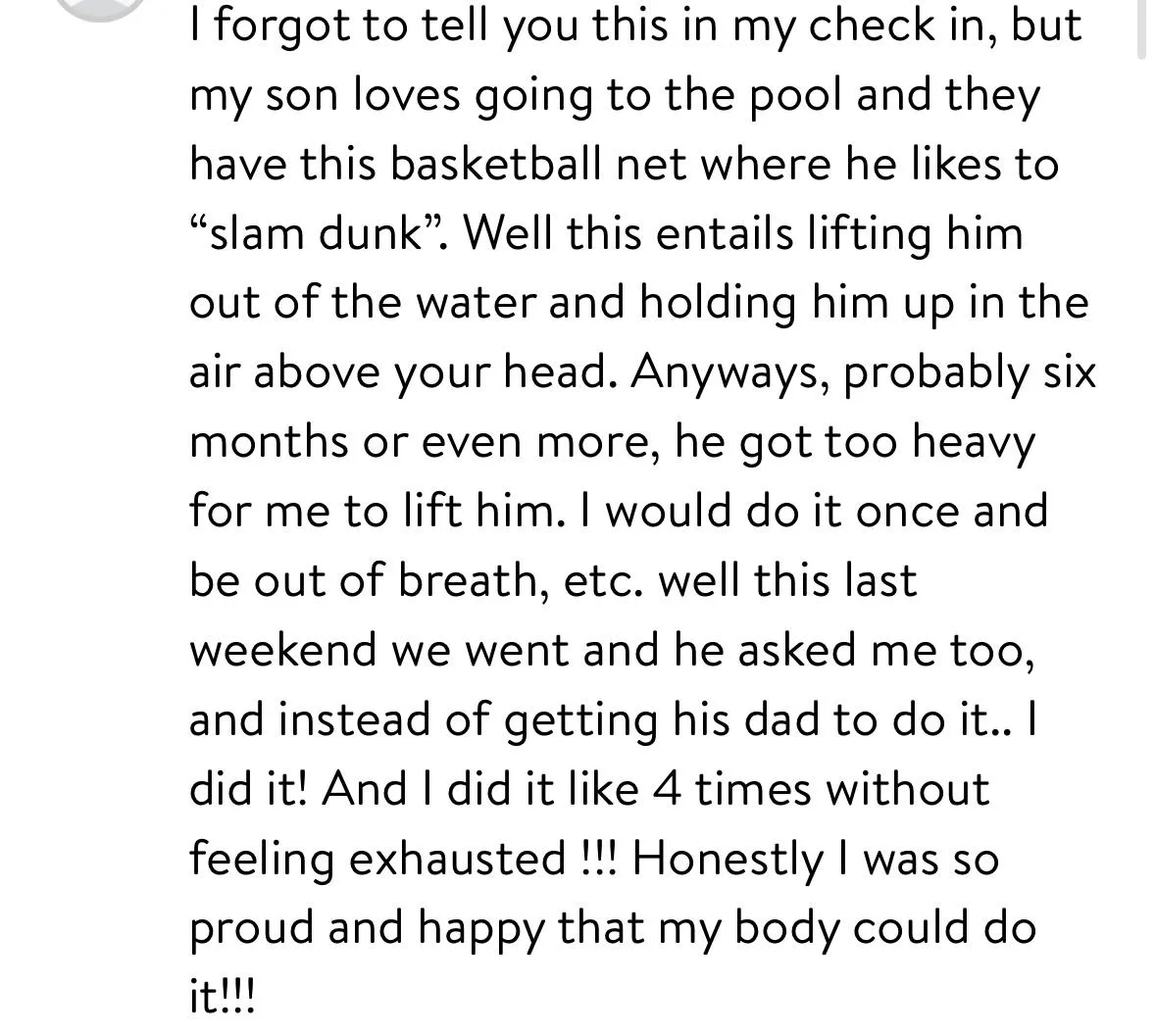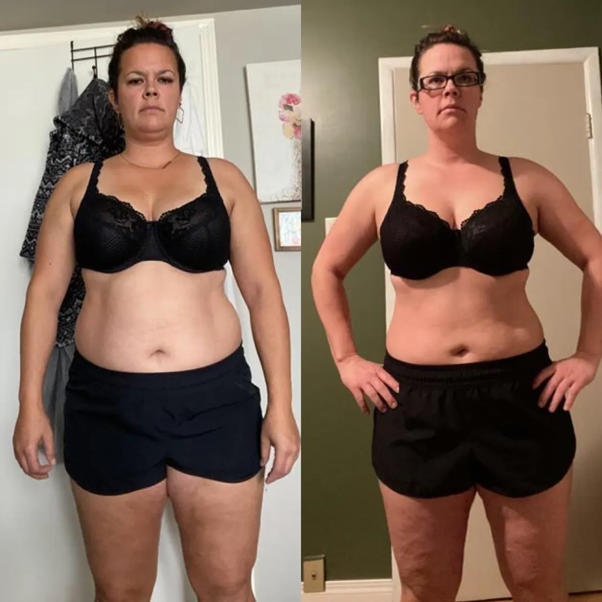 Amber has lost 20lbs in our 1:1 customized program. She was tired of putting it off and saying "I'll do it tomorrow". She wanted her energy back and to build strength. Amber has developed so many healthy habits, and we are just getting started!